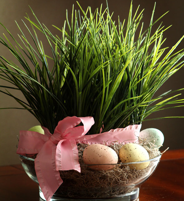 Пасхальный декор из искусственной травы и яиц